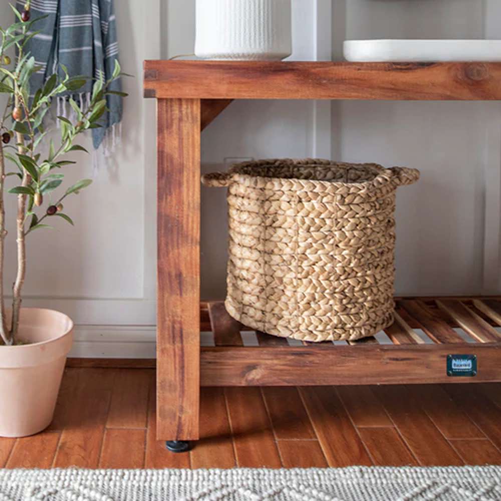 Refine your home style with the timeless beauty of Backyard Discovery’s Acacia Wood Farmhouse Console Table. Expertly crafted from premium 100% acacia wood, this beautiful console table brings natural elegance to any setting and is designed for both indoor and outdoor spaces. The stunning wood grain patterns and rustic charm create eye-catching appeal, while durable construction ensures lasting functionality. Thoughtful design features like adjustable foot levelers ensure perfect stability on any surface, while the spacious lower slat shelf provides both storage and style, ideal for displaying your favorite décor or keeping everyday essentials conveniently organized. Naturally strong and water-resistant, the solid acacia wood craftsmanship delivers exceptional resilience against scratches, warping, and daily wear. Perfect for patios, greenhouses, entryways, or living rooms, this narrow console table is ideal for indoor and outdoor areas, while its robust design ensures lasting beauty through years of use. Its ready-to-assemble design comes with pre-cut, pre-stained, and pre-drilled parts, simplifying the setup process so you can enjoy your new table in no time. Backed by a comprehensive 5-year warranty, Backyard Discovery’s acacia Wood Farmhouse Console Table combines enduring design with timeless style to create a versatile piece that’s built to last and enhance your home decor.