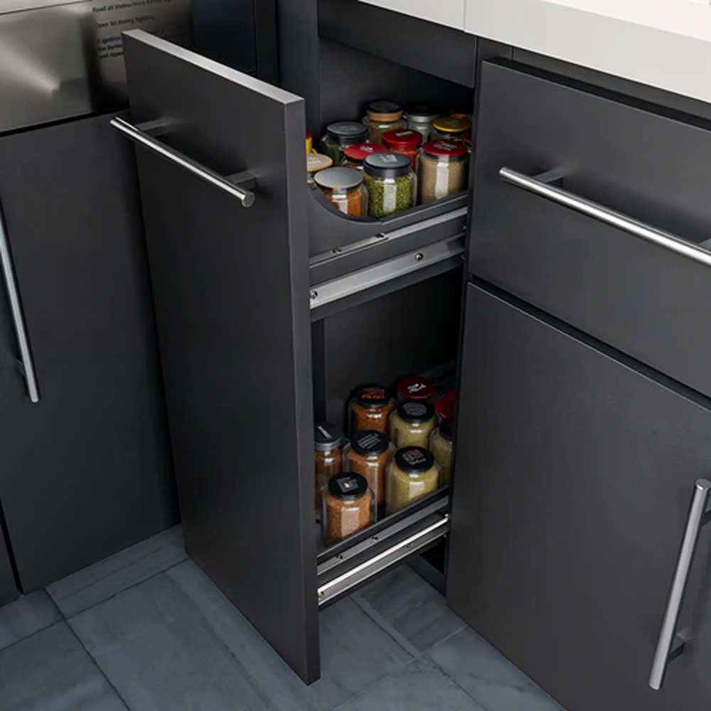 • Integrated Storage: 1 utensil drawer, 1 full size spice drawer and 5 cabinets with soft-close hardware organize cooking essentials